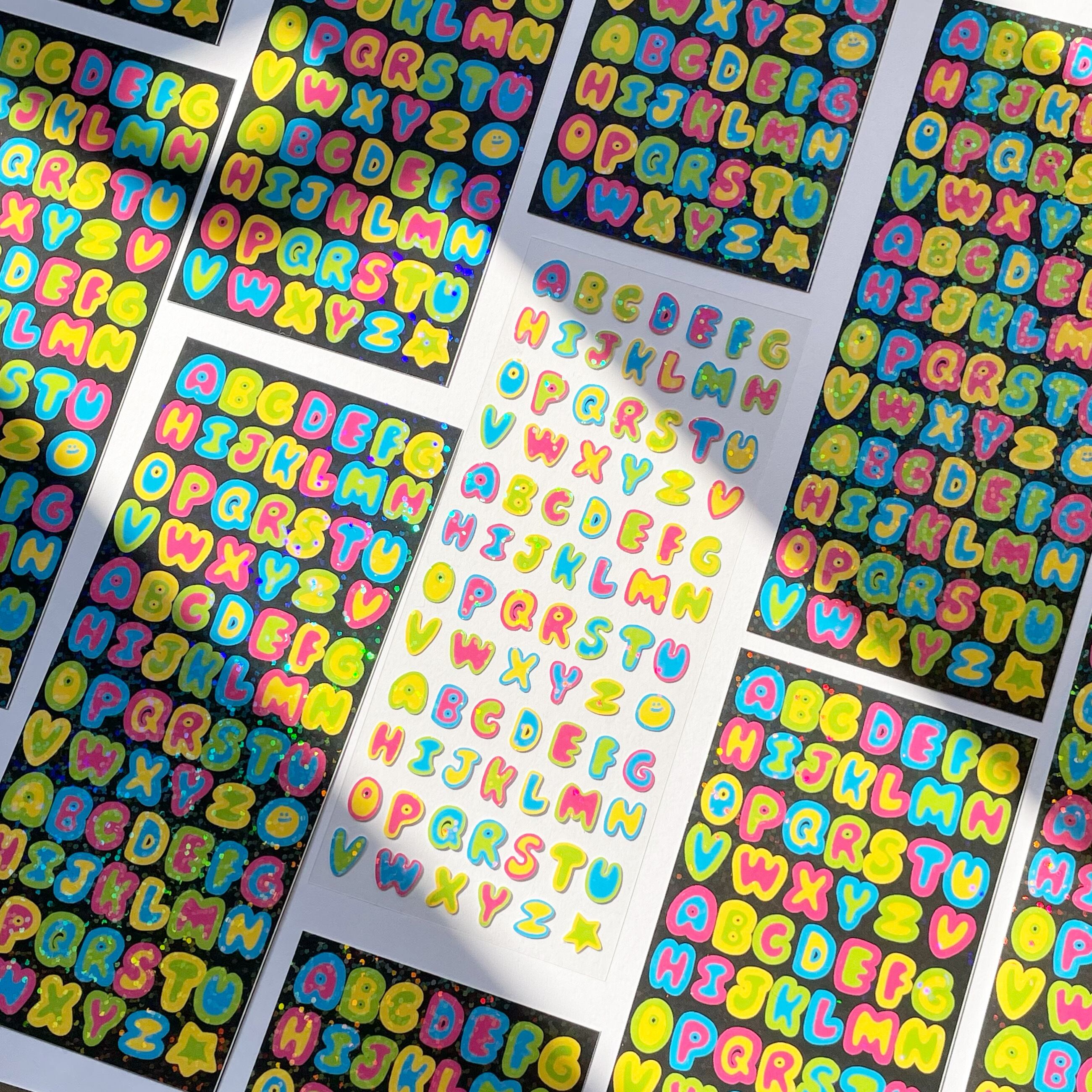 キラキラ素材の手書き風アルファベットシールです。